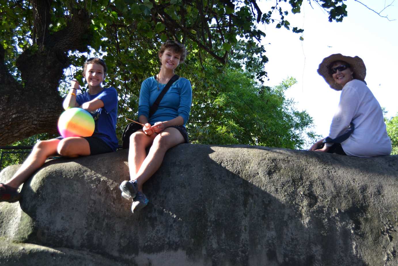 Us ‘en route’ to the Zoo. This is a bridge over the road that runs right past the biggest soccer stadium in Rio. (We could see it from there.)